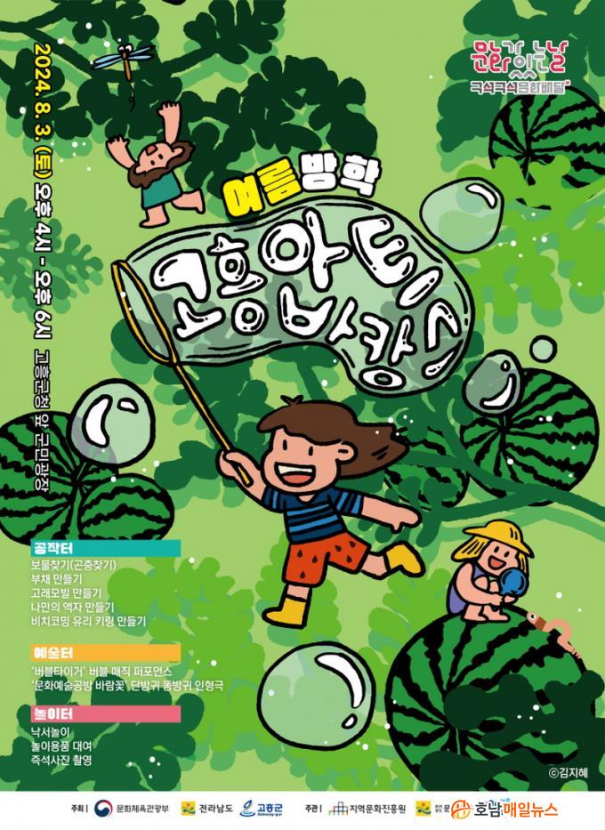 Áö³ 6¿ù 29ÀÏ ¿¸° ¡®°íÈï¾ÆÆ®¹ÙIJ½º-¿µ¿õ¡¯Àº È£±¹º¸ÈÆÀÇ ´ÞÀ» ¸ÂÀÌÇØ ³ª¶ó¸¦ À§ÇØ Èñ»ýÇÏ´Â Á÷¾÷±ºÀ» À§ÇÑ °¨µ¿ÀûÀÎ Çà»ç¿´´Ù¸é, À̹ø 8¿ù 3ÀÏ °íÈï ±º¹Î±¤Àå¿¡¼ ÆîÃÄÁú ¼¼ ¹øÂ° °íÈï¾ÆÆ®¹ÙIJ½º´Â ¡®¿©¸§¹æÇС¯À» ÁÖÁ¦·Î ¾î¸°À̸¦ ´ë»óÀ¸·Î ½Å³ª°í Àç¹ÌÀÖ´Â ¹®È¿¹¼ú ÇÁ·Î±×·¥À» ¸¶·ÃÇÑ´Ù.