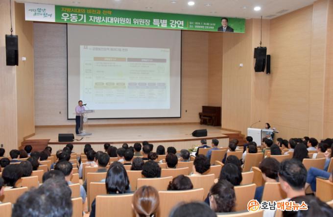 Áö¹æ½Ã´ëÀ§¿øÈ¸ ¿ìµ¿±â À§¿øÀåÀ» ÃÊÃ»ÇØ ÁøÇàÇÑ À̹ø Ưº° °¿¬Àº ¡®Áö¹æ½Ã´ë ºñÀü°ú Àü·«¡¯À̶ó´Â ÁÖÁ¦·Î Áö¿ª ±ÕÇü¹ßÀü Á¤Ã¥À» ±íÀÌ ÀÖ°Ô ÀÌÇØÇϰí Áö¹æ¼Ò¸ê¿¡ ¼±Á¦ÀûÀ¸·Î ´ëÀÀÇÏ´Â Áö¿ª ¸ÂÃã Àü·«À» ¹ß±¼ÄÚÀÚ ¸¶·ÃÇß´Ù.