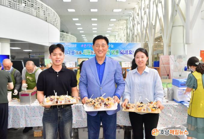 ÆÏºù¼ö ³ª´® Çà»ç´Â ÀÚºñ½ÅÇàȸ°¡ 4³â° À̾î¿À°í ÀÖ´Â ³ª´® Ȱµ¿ÀÌ´Ù. ¿©¸§¸¶´Ù ±¤ÁÖ‧Àü³²±Ç °ø¹«¿ø, Çлý, ÀϹÝÀÎ µî ´©±¸¿¡°Ô³ª ½Ã¿øÇÑ ÆÏºù¼ö¸¦ ¼±»çÇϰí ÀÖ´Ù. À̹ø ³ª´®¿¡´Â ±¤ÁÖ ¼Ò¿øÁ¤»ç µµ°è ¾î¸¥½º´Ôµé°ú ¹«·®¼±¿ø Áö¼±½º´Ô, ¿øÈ¿»ç ¸¶¸í½º´Ôµµ µ¿ÂüÇØ Àǹ̸¦ ´õÇß´Ù.