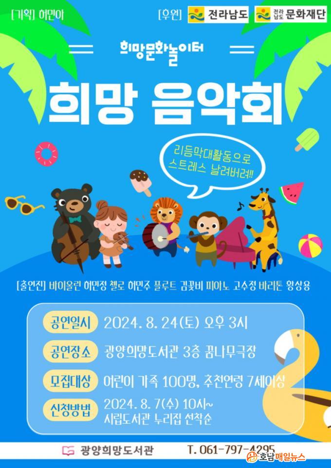 ¡®Èñ¸Á¹®È³îÀÌÅÍ¡¯´Â ¸Å¿ù ¾î¸° Àڳฦ µÐ °¡Á·¿¡°Ô ¹®È ¿¹¼ú°ø¿¬À» Á¦°øÇϰí ÀÖ´Â ±¤¾çÈñ¸Áµµ¼°üÀÇ Æ¯È ÇÁ·Î±×·¥À¸·Î, ÀÌ´Þ ¿¸®´Â °ø¿¬Àº ¿©¸§À» ¸Â¾Æ ´õ ¸¹Àº °¡Á·ÀÌ Âü¿©ÇÒ ¼ö ÀÖµµ·Ï Åä¿äÀÏ¿¡ °³ÃÖÇÑ´Ù.