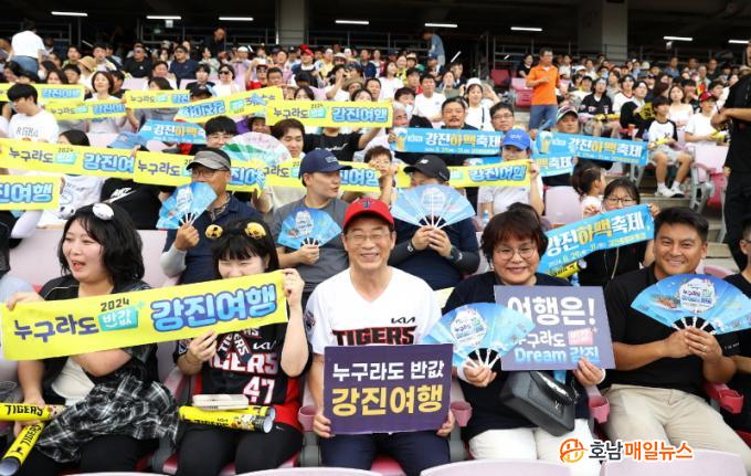 À̳¯ °æ±âÀå¿¡¼´Â °Áø¿ø ±º¼ö¸¦ ºñ·ÔÇØ ¼¼ø¼± °Áø±ºÀÇȸÀÇÀå µî °øÁ÷ÀÚ 200¿© ¸íÀÌ Âü¿©ÇØ, °æ±âÀåÀ» ãÀº ¾ß±¸ÆÒµé¿¡°Ô ÇϸÆÃàÁ¦¿Í ¹Ý°ª °Áø¿©Çà ¾È³» È«º¸¹°À» ¹èºÎÇϰí, ûÁ¤ °Áø¿¡¼ »ý»êÇÑ ½ÒÀ» ³ª´²ÁÖ´Â µî ¹«´õÀ§ ¼Ó ¡®°Áø ¾Ë¸®±â¡¯¿¡ ±¸½½¶¡À» Èê·È´Ù.