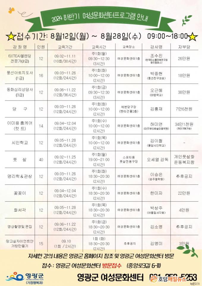 ¿µ±¤±º¿¡ ÁÖ¼Ò¸¦ µÎ°í °ÅÁÖÇÏ´Â ¿©¼ºÀÌ¸é ´©±¸³ª ¼ö°½ÅûÀÌ °¡´ÉÇÏ°í ¿À´Â 8¿ù 12ÀϺÎÅÍ 8¿ù 28ÀϱîÁö [¿µ±¤±º ¿©¼º¹®È¼¾ÅÍ(¢Î353-5253)]¿¡¼ ¼±Âø¼ø ¹æ¹® Á¢¼ö¸¦ ¹Þ´Â´Ù.