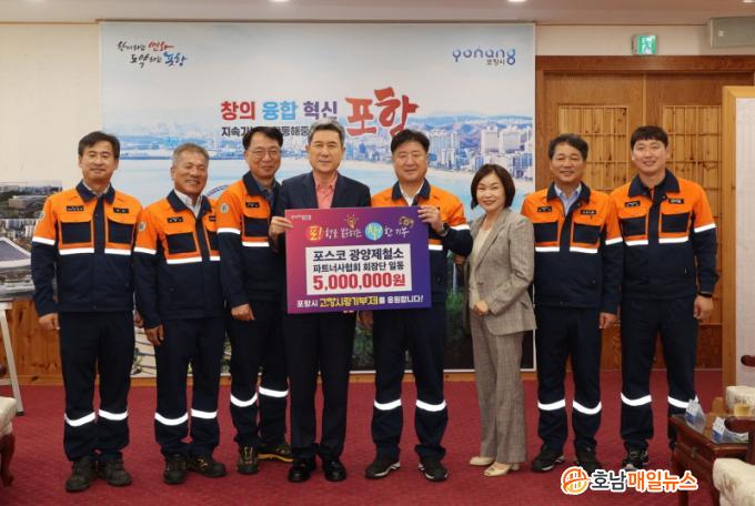 ÇÑÆí, Æ÷Ç×Á¦Ã¶¼Ò ÆÄÆ®³Ê»çÇùȸ ȸÀå´Ü°ú Æ÷Ç× ÆÄÆ®³Ê»çÀÎ ¢ßÇÇ¿¤¿¥Àº ¿À´Â 19ÀÏ ±¤¾ç½Ã¸¦ È´ä ¹æ¹®ÇØ °íÇâ»ç¶û ±âºÎ±ÝÀ» Àü´ÞÇÏ¸ç ±¤¾ç½Ã ¹ßÀüÀ» ÀÀ¿øÇÒ °èȹÀÌ´Ù.