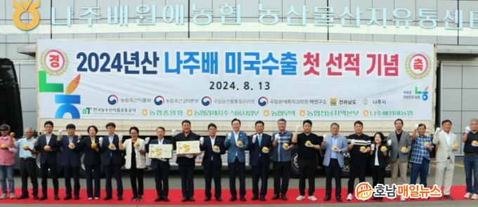Àü±¹ ÃÖ´ë ¹è ÁÖ»êÁöÀÎ Àü¶ó³²µµ ³ªÁÖ½Ã(½ÃÀå À±º´ÅÂ)´Â Àü³¯ ºÎ´öµ¿¿¡ À§Ä¡ÇÑ ³ó»ê¹°»êÁöÀ¯Åë¼¾ÅÍ ¼öÃâ¼±°úÀå¿¡¼ ³ªÁÖ¹è¿ø¿¹³ó¾÷Çùµ¿Á¶ÇÕ°ú ÇÔ²² ¿øÈ² ¹è ¹Ì±¹ ¼öÃâ ¼±Àû Çà»ç¸¦ °¡Á³´Ù°í 14ÀÏ ¹àÇû´Ù. ¼öÃâ ¹°·®Àº ¼öÃâ ÄÁÅ×ÀÌ³Ê 8´ë ºÐ·®ÀÇ ¾à 110Åæ ±Ô¸ð´Ù. ½Ã´Â ¿ÃÇØ ¼öÃâ ¸ñÇ¥·®À» 6000ÅæÀ¸·Î Àâ¾Ò´Ù. ¾Õ¼ ½Ã´Â Áö³ÇØ ³ªÁÖ¹è ¼öÃâ ¿ª»ç»ó °¡Àå ¸¹Àº 5256ÅæÀ» ¼öÃâÇØ 1543¸¸´Þ·¯(ÇÑÈ ¾à 218¾ï¿ø) ½ÇÀûÀ» ´Þ¼ºÇÑ ¹Ù ÀÖ´Ù.
