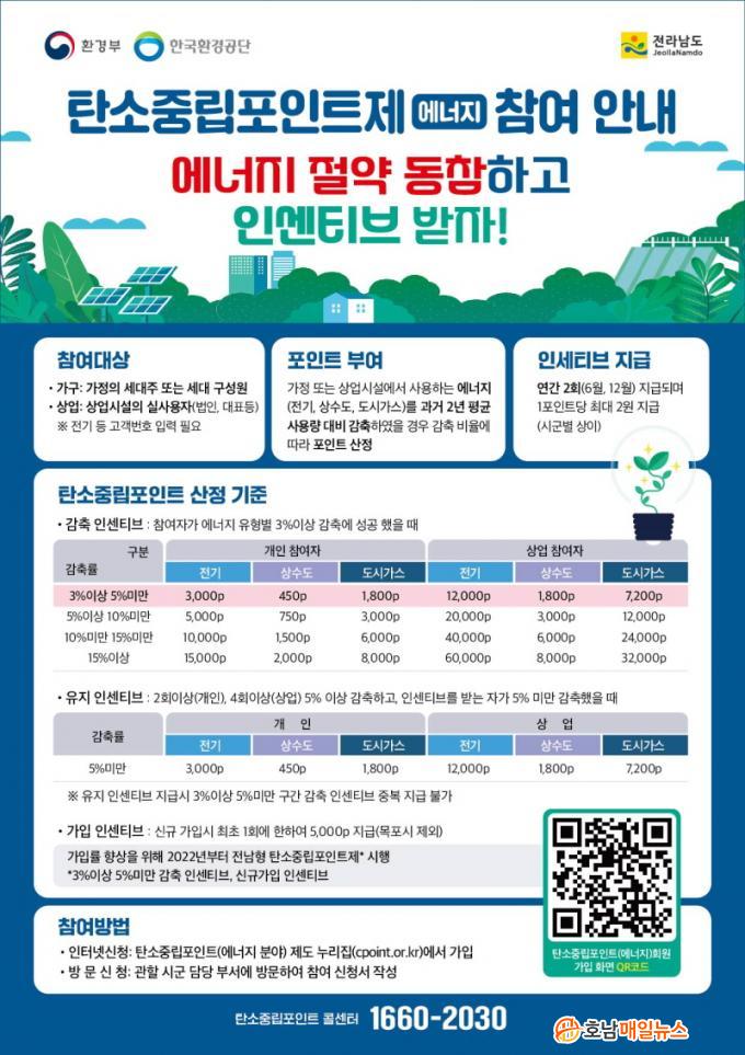 Àü³²µµ´Â ±×µ¿¾È °¡ÀÔÀÚ°¡ ¿¡³ÊÁö »ç¿ë·®À» 5% ÀÌ»ó °¨ÃàÇßÀ» ¶§¸¸ ±¹°íº¸Á¶»ç¾÷(±¹ºñ 50%¡¤½Ã±ººñ 50%)À¸·Î Àμ¾Æ¼ºê¸¦ Áö±ÞÇßÁö¸¸, 2022³âºÎÅÍ ¿¡³ÊÁö »ç¿ë·®À» 3% ÀÌ»ó 5% ¹Ì¸¸ °¨ÃàÇÑ °¡±¸¿¡µµ Àμ¾Æ¼ºê¸¦ È®´ë Áö±ÞÇÏ´Â Àü³²Çü ź¼ÒÁ߸³Æ÷ÀÎÆ®Á¦¸¦ ½ÃÇàÇϰí ÀÖ´Ù.
