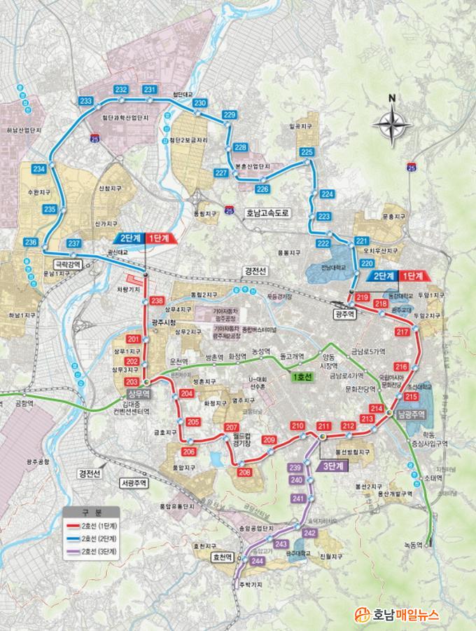 ¡®µµ½Ãöµµ 2È£¼± 2´Ü°è¡¯´Â ±¤ÁÖ¿ª¿¡¼ Àü³²´ëÇб³¸¦ °ÅÃÄ Àϰ÷´Ü¡¤¼ö¿Ï¡¤¿î³²Áö±¸ µî ºÏºÎÁö¿ªÀ» ¿¬°áÇÏ´Â 20.046§° ±¸°£¿¡ 18°³ Á¤°ÅÀåÀ» °Ç¼³ÇÏ´Â ´ë±Ô¸ð ÇÁ·ÎÁ§Æ®ÀÌ´Ù. 1´Ü°è¿Í ¿¬°èÇØ ±âÁ¸ µµ½É°ú ½Åµµ½Ã °£ ±³Åë È¥ÀâÀ» ÇØ¼ÒÇϰí, µµ½Ãöµµ Áß½ÉÀÇ ´ëÁß±³Åëü°è¸¦ ±¸ÃàÇÔÀ¸·Î½á ±¤ÁÖÁö¿ªÀÇ ±ÕÇü ¹ßÀü°ú µµ½Ã°³¹ßÀ» ÃËÁøÇÒ °ÍÀ¸·Î ±â´ëµÈ´Ù.