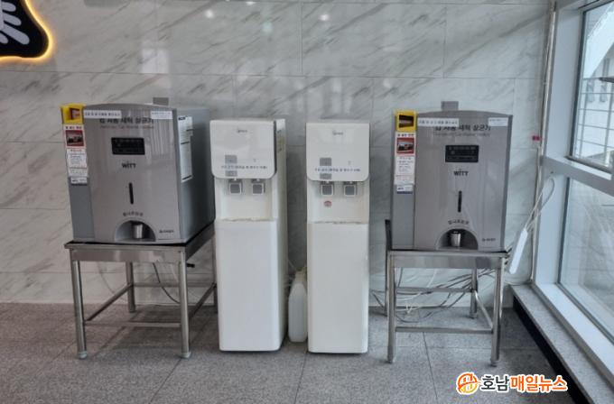 ±¤Áֽô ½Ãû ÇູȸÀÇ½Ç ¾Õ µî ÃÑ 3´ë¿Í ¿ª»ç¹Î¼Ó¹Ú¹°°ü¡¤¸¶ÇÑÀ¯ÀûüÇè°ü 1Ãþ¿¡ °¢ 1´ëÀÇ ÄÅ ³»ÀåÇü ¼¼Ã´±â¸¦ ¼³Ä¡Çß´Ù. ½Ãû°ú ¹Ú¹°°üÀ» ¹æ¹®ÇÏ´Â ½Ã¹Îµé¿¡°Ô ÀÏȸ¿ë Á¾À̰í±òÄÅ ´ë½Å ´Ùȸ¿ë ÄÅÀ» Á¦°øÇØ ÀÏȸ¿ëǰ ¹ß»ý·®À» ÁÙÀÌ°í ´Ùȸ¿ë±â »ç¿ëÀ» À¯µµÇÒ °èȹÀÌ´Ù.