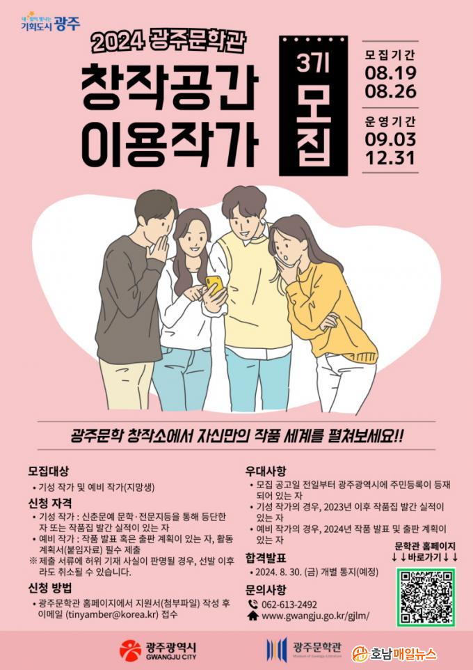 ÀÛ°¡º°·Î Àü¿ë Á¼®À» ¹èÁ¤Çϸç, °ø°£ ÀÌ¿ëÀº ¹«·á´Ù. ±³Åëºñ¡¤½Äºñ¡¤Ã¼Àçºñ µîÀº º»ÀÎ ºÎ´ãÀÌ´Ù. ³ëÆ®ºÏÀº °³ÀοëÀ» »ç¿ëÇØ¾ß ÇÑ´Ù. º¸´Ù ÀÚ¼¼ÇÑ »çÇ×Àº ±¤ÁÖ¹®Çаü ´©¸®Áý(www.gwangju.go.kr/gjlm)¿¡¼ È®ÀÎÇÒ ¼ö ÀÖ´Ù.
