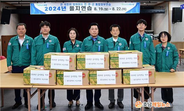 À̳¯ ±¤ÁÖ±¤¿ª½Ã ¼±¸ÀÇȸ´Â À»Áö¿¬½À ÁøÇà»óȲ¿¡ ´ëÇØ °£·«È÷ º¸°í¹ÞÀº ÈÄ À§¹®Ç°À» Àü´ÞÇÏ¸ç ±Ù¹«ÀÚµéÀ» °Ý·ÁÇϰí, ºóÆ´¾ø´Â ÈÆ·ÃÀ¸·Î ±¸¹ÎÀÌ Àü½Ã¿¡ ¾È½ÉÇÒ ¼ö ÀÖµµ·Ï ³ë·ÂÇØ ´Þ¶ó°í ´çºÎÇß´Ù.