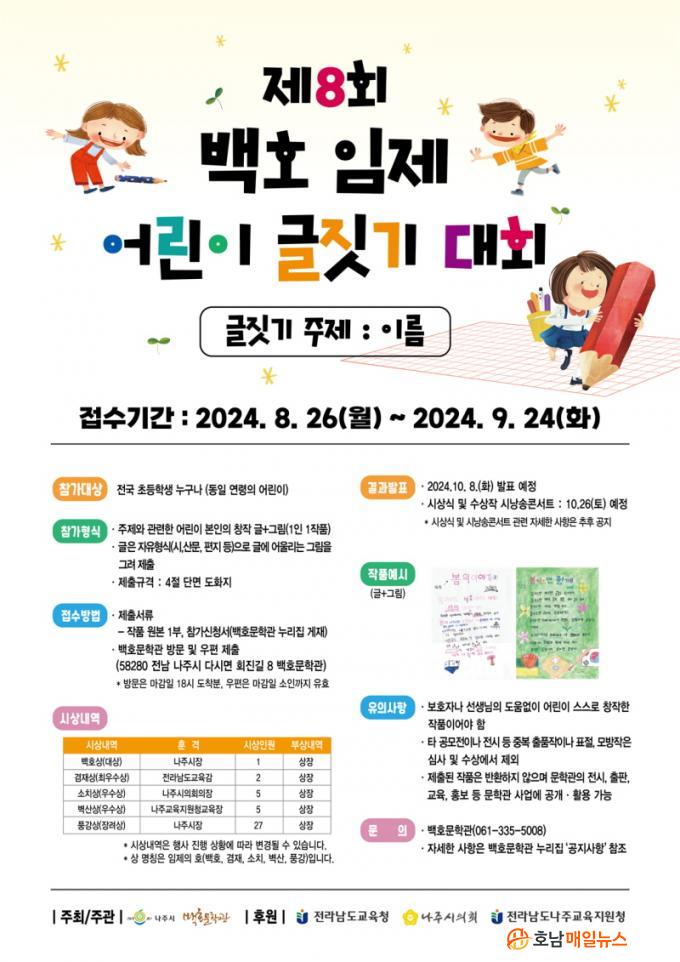 ³ªÁֽà ¹éÈ£¹®ÇаüÀÌ Àü±¹ ¾î¸°ÀÌ ´ë»óÀ¸·Î Á¦8ȸ ¹éÈ£ ÀÓÁ¦ ¾î¸°ÀÌ ±ÛÁþ±â ´ëȸ¸¦ °³ÃÖÇÑ´Ù°í 22ÀÏ ¹àÇû´Ù.