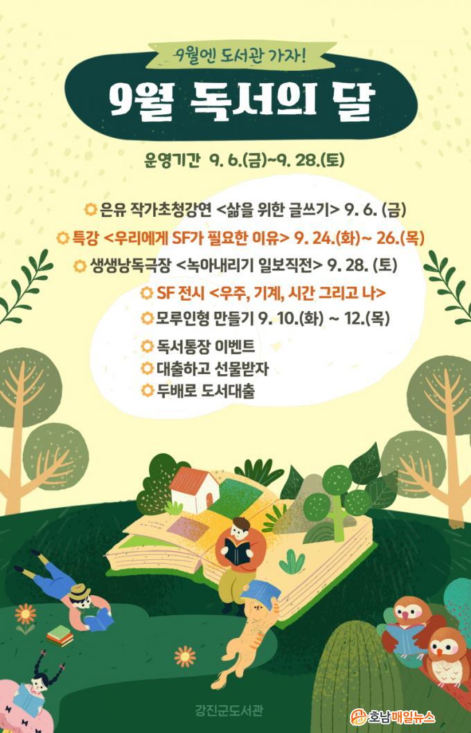 ±× ¿Ü¿¡µµ ¿¬Ã¼È¸¿øÀ» À§ÇÑ ¡®¹Ý³³À» ÀØÀº ±×´ë¿¡°Ô¡¯, ¡®µ¶¼ÅåÀå À̺¥Æ®¡¯, ¡®µÎ ¹è·Î µµ¼´ëÃ⡯, ¡®´ëÃâÇÏ°í ¼±¹°¹Þ±â¡¯ µî ´Ùä·Ó°í dz¼ºÇÑ Çà»çµéÀÌ ÁغñµÅ ÀÖ´Ù. ÀÚ¼¼ÇÑ »çÇ×Àº °Áø±ºµµ¼°ü ´©¸®Áý(https://www.gjlib.go.kr/) °øÁö»çÇ×À» Âü°íÇϰųª °Áø±º µµ¼°ü(061-430-3835)À¸·Î ¹®ÀÇÇÏ¸é µÈ´Ù.