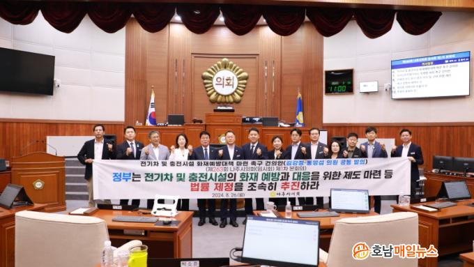 ³ªÁÖ½ÃÀÇȸ´Â À̹ø °ÇÀǾÈÀ» ÅëÇØ ¡ãÀü±âÂ÷ ¹× ÃæÀü½Ã¼³ÀÇ ÈÀç ¿¹¹æ°ú ´ëÀÀÀ» À§ÇÑ ¹ý·üÀ» Á¦Á¤ÇÒ °Í, ¡ã ÈÀç½Ã ü°èÀûÀ¸·Î °ü¸®ÇÒ ¼ö ÀÖ´Â Àη ¹× ¿¹»ê Áö¿ø ¹æ¾È°ú °°Àº Á¾ÇÕÀûÀÎ ´ëÃ¥À» ¸¶·ÃÇØ ÁÙ °ÍÀ» °·ÂÈ÷ Ã˱¸Çß´Ù.