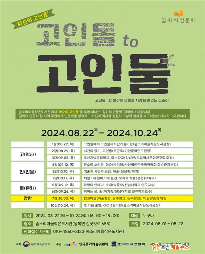 º» °Á´ ¹®ÈüÀ°°ü±¤ºÎ Áö¿øÀ» ¹Þ¾Æ 2024³â 8¿ù 22ÀÏ °³°ÇÏ¿© 10¿ù 24ÀϱîÁö µ¿º¹¸é »ïº¹±Ç Ä¿¹Â´ÏƼ¼¾ÅÍ(ȼø±º µ¿º¹¸é ±è»ñ°«·Î 655)¿¡¼ ÁøÇàµÈ´Ù.