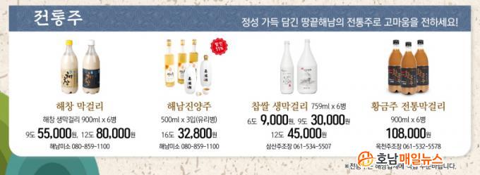 ¸Å³â Àü±¹ÀÇ ¸·°É¸® ǰÆòȸ¿¡¼ ÃÖ°í»óÀ» ÈÛ¾µ Á¤µµ·Î È£Æò¹Þ°í ÀÖ´Â ÇØ³² ¸·°É¸®´Â °¢ ÁÖÁ¶À庰 Ư»öÀÖ´Â ¸·°É¸®¸¦ ¼±º¸À̰í ÀÖ´Ù. ¶ÇÇÑ Àü¶ó³²µµ ¹«Çü¹®ÈÀç·Î ÁöÁ¤µÇ¾î ÀÖ´Â ÇØ³² Áø¾çÁÖµµ Ãß¼® ¼±¹°¿ë ¼¼Æ®¸¦ ÆÇ¸ÅÇÑ´Ù.