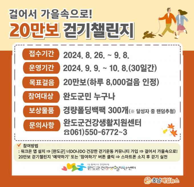 縰Áö´Â 9¿ù 9ÀϺÎÅÍ 10¿ù 8ÀϱîÁö 30Àϰ£ ÁøÇàµÇ¸ç, ±â°£ ³» 20¸¸ º¸ °È±â(ÇÏ·ç 8,000º¸ ÀÎÁ¤)¸¦ ´Þ¼ºÇÏ¸é µÈ´Ù. 20¸¸ º¸ ´Þ¼ºÀÚ Áß Ãß÷À» ÅëÇØ 300¸í¿¡°Ô º¸»ó ¹°Ç°(°æ·® Æúµù ¹é ÆÑ)À» Áö±ÞÇÑ´Ù.
