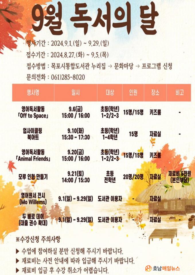 ÇÁ·Î±×·¥ Á¢¼ö´Â ÇöÀç ¼±Âø¼ø ¸ðÁýÁßÀ¸·Î, ¿À´Â 9¿ù 5ÀÏ ¿ÀÈÄ 6½Ã±îÁö ¸ñÆ÷½ÃÅëÇÕµµ¼°ü ´©¸®Áý(www.mokpolib.or.kr)¿¡¼ ½ÅûÇÏ¸é µÈ´Ù. Á¢¼ö ¹æ¹ý µî ±âŸ ÀÚ¼¼ÇÑ ³»¿ëÀº ÅëÇÕµµ¼°ü ´©¸®Áý(¿¸°¸¶´ç¡æ°øÁö»çÇ×)¸¦ Âü°íÇÏ¸é µÈ´Ù.