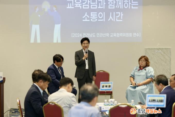 ƯÈ÷, ¹Î°ü»êÇÐ À§¿øµéÀº ±³À°°¨°ú ÇÔ²²ÇÏ´Â ´ëÈÀÇ ½Ã°£À» ÅëÇØ Àü³²±³À° Çö¾È°ú °ü·ÃÇØ ÀǰßÀ» ³ª´©°í, ¹Ì·¡ ±³À° ¹ßÀü ¹æÇâ¿¡ ´ëÇÑ ¿¶í Åä·ÐÀ» Çß´Ù. À̳¯ ¿¬¼ö Âü¿©ÀÚµéÀº Áö³ 5¿ù ¼º°ø¸®¿¡ °³ÃÖµÈ ¡®2024 ´ëÇѹα¹ ±Û·ÎÄà ¹Ì·¡±³À°¹Ú¶÷ȸ¡¯ÀÇ ¼º°ú¸¦ ±³À° ÇöÀå¿¡ ³ª´©±â À§ÇÑ ¾Æ³¦ ¾ø´Â Áö¿ø°ú Çù·ÂÀ» ¾à¼ÓÇß´Ù.