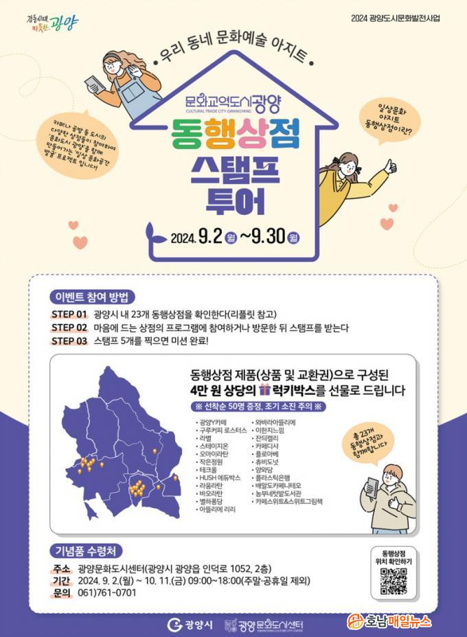À̺¥Æ®¿¡ Âü¿©ÇÏ´Â µ¿Çà»óÁ¡ Á¤º¸³ª »óǰ ¼ö·É ¹æ¹ý µî ±âŸ ÀÚ¼¼ÇÑ »çÇ×Àº ±¤¾ç¹®Èµµ½Ã¼¾ÅÍ ´©¸®Áý(ȨÆäÀÌÁö)¿Í SNS ä³Î¿¡ ¾È³»µÅ ÀÖÀ¸¸ç ÀüÈ(¢Ï 061-761-0701) ¹®ÀǸ¦ ÅëÇØ ¾È³»¹ÞÀ» ¼öµµ ÀÖ´Ù.