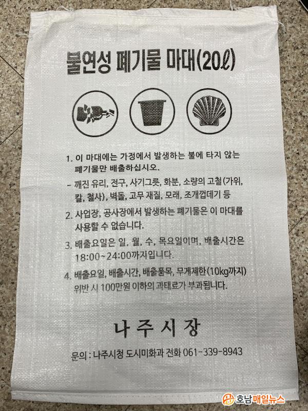 ¸¶´ë´Â 20L ±Ô°ÝÀ¸·Î, ¹«°Ô´Â 10kgÀ» ³ÑÁö ¾Ê¾Æ¾ß Çϸç, Á¾·®Á¦¹°Ç° ÆÇ¸Å¼Ò(¸¶Æ®, ÆíÀÇÁ¡)¿¡¼ ÇÑ Àå´ç 3,000¿ø¿¡ ÆÇ¸ÅÇÑ´Ù. ºÒ¿¬¼º¸¶´ëÀÇ ¹èÃâ¹æ¹ýÀº ´ëÇüÆó±â¹°°ú °°Àº ¹æ¹ýÀ¸·Î ½Å°íÇÏ¸é µÈ´Ù.