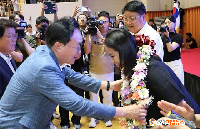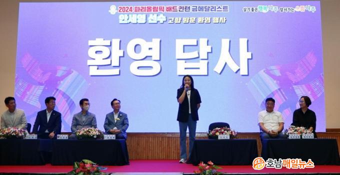 À̳¯ ¿ÀÈÄ 5½Ã²² ¾È¼¼¿µ ¼±¼ö°¡ üÀ°°üÀ¸·Î µé¾î¼ÀÚ ½Ã¹ÎµéÀº ¡°¾È¼¼¿µ¡±À» ¿¬È£ÇÏ¸ç ±ÝÀÇȯÇâÇÑ ³ªÁÖÀÇ µþÀ» ÀÀ¿øÇß´Ù. ¾È ¼±¼ö´Â ³ªÁֽà ÀÌ⵿¿¡¼ ž´Ù. ³ªÁÖ½ÃüÀ°È¸ Àü »ç¹«±¹ÀåÀÌÀÚ ±¹°¡´ëÇ¥ º¹½Ì ¼±¼ö¸¦ Áö³½ ¾Æ¹öÁö ¾ÈÁ¤Çö ¾¾¸¦ µû¶ó ¹èµå¹ÎÅÏÀ» ½ÃÀÛÇß´Ù.