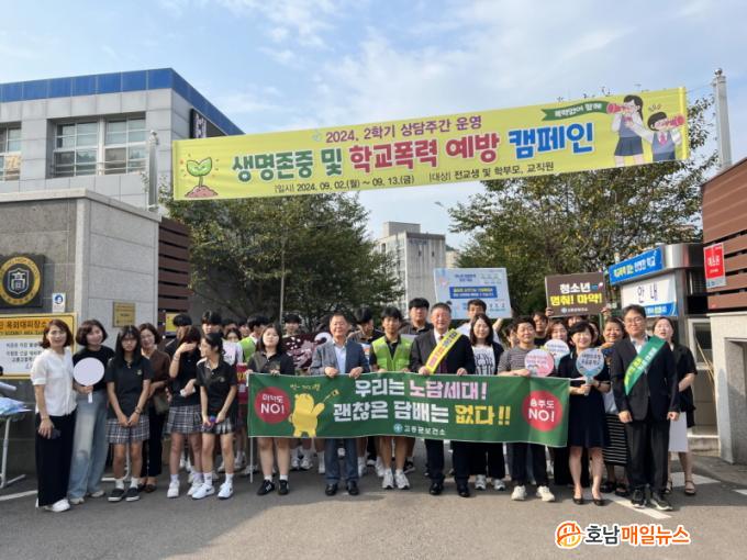 Ä·ÆäÀο¡¼´Â Çб³ Á¤¹® ¾Õ¿¡¼ ÇÇÄϰú Çö¼ö¸·À» µé°í ¡®¿ì¸®´Â ³ë´ã¼¼´ë! ±¦ÂúÀº ´ã¹è´Â ¾ø´Ù! ´Â ½½·Î°ÇÀ» ¿ÜÃÆÀ¸¸ç, ½½·Î°ÇÀÌ ÀûÈù È«º¸ ¹°Ç°À» ³ª´²ÁÖ¸ç Èí¿¬ ¿¹¹æÀÇ Á߿伺À» ¾Ë·È´Ù.