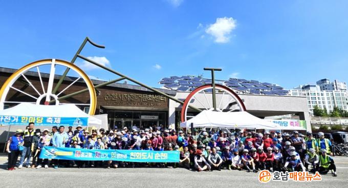 ÀÚÀü°Å Ÿ±â Çà»ç Âü°¡ÀÚµéÀº ÀÚÀü°Å¹®È¼¾ÅͺÎÅÍ µ¿Ãµ ½ºÀ®±³±îÁö ÃÑ 9km¿¡ ´ÞÇÏ´Â ÀÚÀü°Å ÁÖÇà ±¸°£À» ´Þ¸®¸ç ¼øÃµ½ÃÀÇ ¾Æ¸§´Ù¿î ÀÚ¿¬À» ¸¸³£Çß´Ù. Âü°¡ÀÚµéÀº ÀÚÀü°Å¸¦ Ÿ°í ¼øÃµÀÇ °æÄ¡¸¦ Áñ±â¸ç, ģȯ°æ À̵¿¼ö´ÜÀÎ ÀÚÀü°Å ÀÌ¿ëÀÇ Á߿伺¿¡ ´ëÇØ ´Ù½Ã Çѹø »ý°¢Çغ¸´Â ½Ã°£À» °¡Á³´Ù.
