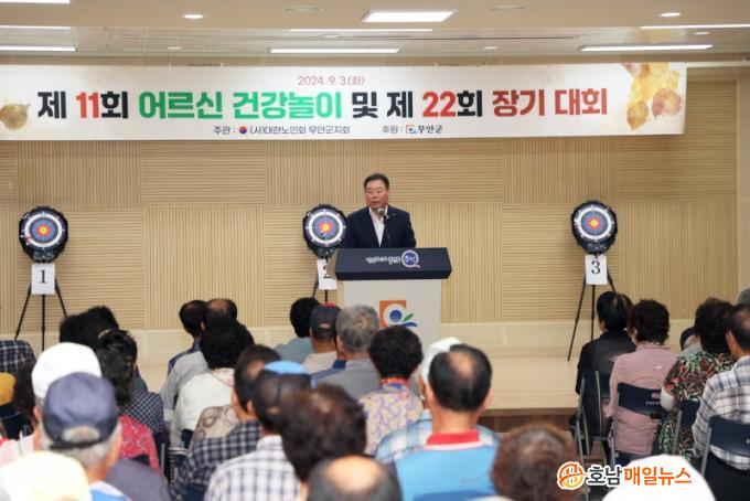 ±èõ¼º ´ëÇѳëÀÎȸ ¹«¾È±ºÁöȸÀåÀº ´ëȸ»ç¸¦ ÅëÇØ ¡°¹é¼¼½Ã´ë, °Ç°ÇÑ ¹é¼¼¸¦ À§ÇØ Æò¼Ò¿¡ °æ·Î´çÀ̳ª °¡Á¤¿¡¼ ¾î¸£½Åµé¿¡°Ô ¸Â´Â ¿îµ¿À» »ýÈ°È ÇÏÀÚ¡±¸ç ¡°¿À´Ã Çà»ç¸¦ ÅëÇØ ¿©·¯ºÐÀÇ °Ç°ÁõÁø°ú Ä£¸ñ µ¿È£, ÈÇÕÀÇ ÀåÀÌ µÇ¾úÀ¸¸é ÇÕ´Ï´Ù¡±°í ¸»Çß´Ù.