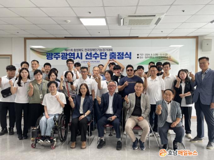 ±¤ÁÖ±¤¿ª½Ã(½ÃÀå °±âÁ¤)´Â 3ÀϺÎÅÍ 6ÀϱîÁö ÃæºÏ ûÁֽÿ¡¼ ¿¸®´Â ¡®Á¦41ȸ Àü±¹Àå¾ÖÀαâ´É°æ±â´ëȸ¡¯¿¡ ±¤Áֽà ´ëÇ¥·Î 26°³ Á÷Á¾ 31¸íÀÇ ¼±¼ö°¡ Âü°¡, Áö³ 3ÀÏ ¡®±¤Áֽà ¼±¼ö´Ü ÃâÁ¤½Ä¡¯À» °¡Á³´Ù.