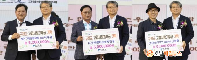 ½Å¿µÇö ´ëÇ¥ÀÌ»ç´Â ±¸·ÊÀåÇÐȸ ÀÌ»ç·Î Ȱµ¿Çϰí ÀÖÀ¸¸ç, À̹ø °íÇâ»ç¶û±âºÎ¿Í ´õºÒ¾î ÈĹèµéÀ» À§ÇÑ ÀåÇбÝÀ» Àü´ÞÇÏ°í »ç¶ûÀÇ ¿¸Å ±â±ÝÀ¸·Î 1,000¸¸ ¿øÀ» ±âŹÇÏ´Â µî °íÇâÀ» À§ÇÑ Áö¿øÀ» ¾Æ³¢Áö ¾Ê°í ÀÖ´Ù.