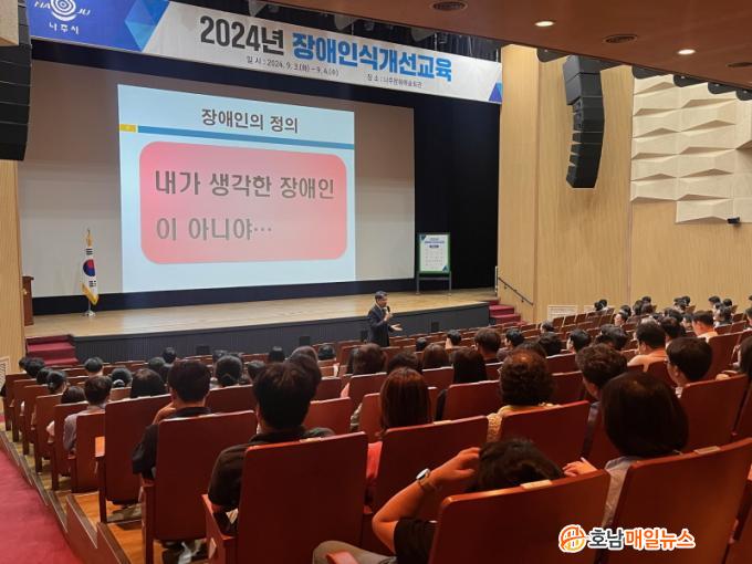 À±º´Å ³ªÁÖ½ÃÀåÀº ¡°³ªÁֽà °øÁ÷ÀÚµéÀÌ À̹ø ±³À°À» ÅëÇØ Àå¾Ö¿¡ ´ëÇÑ ÀνÄÀ» Á¦°íÇϰí, Àå¾ÖÀΰú ºñÀå¾ÖÀÎÀÌ ´õºÒ¾î »ì¾Æ°¡´Â ¡®Àå¾Ö ģȵµ½Ã¡¯¸¦ ¸¸µé±â À§ÇØ ÃÖ¼±À» ´ÙÇÏ±æ ¹Ù¶õ´Ù¡±°í ¸»Çß´Ù.