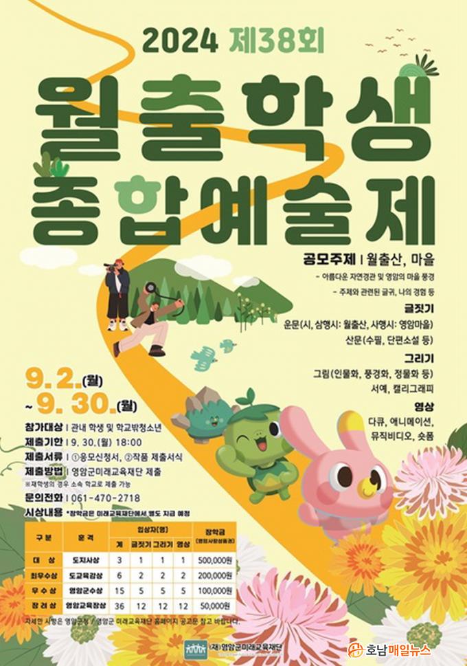 ¿ùÃâÇлýÁ¾ÇÕ¿¹¼úÁ¦´Â ¿µ¾Ï ÇлýµéÀÇ ¿¹¼úÀû °¨¼º°ú ÀáÀç·ÂÀ» Ű¿ì°í, ¾ÖÇâ½ÉÀ» ±æ·¯ÁÖ±â À§ÇØ ¸Å³â ¿¸®°í ÀÖ´Ù. À̹ø °ø¸ð¿¡´Â ¿µ¾Ï Çлý°ú Çб³¹Ûû¼Ò³âÀÌ Âü°¡ÇÒ ¼ö ÀÖ°í, ÁÖÁ¦´Â ¡®¿ùÃâ»ê¡¯ ¡®¸¶À»¡¯ 2°¡ÁöÀÌ´Ù.