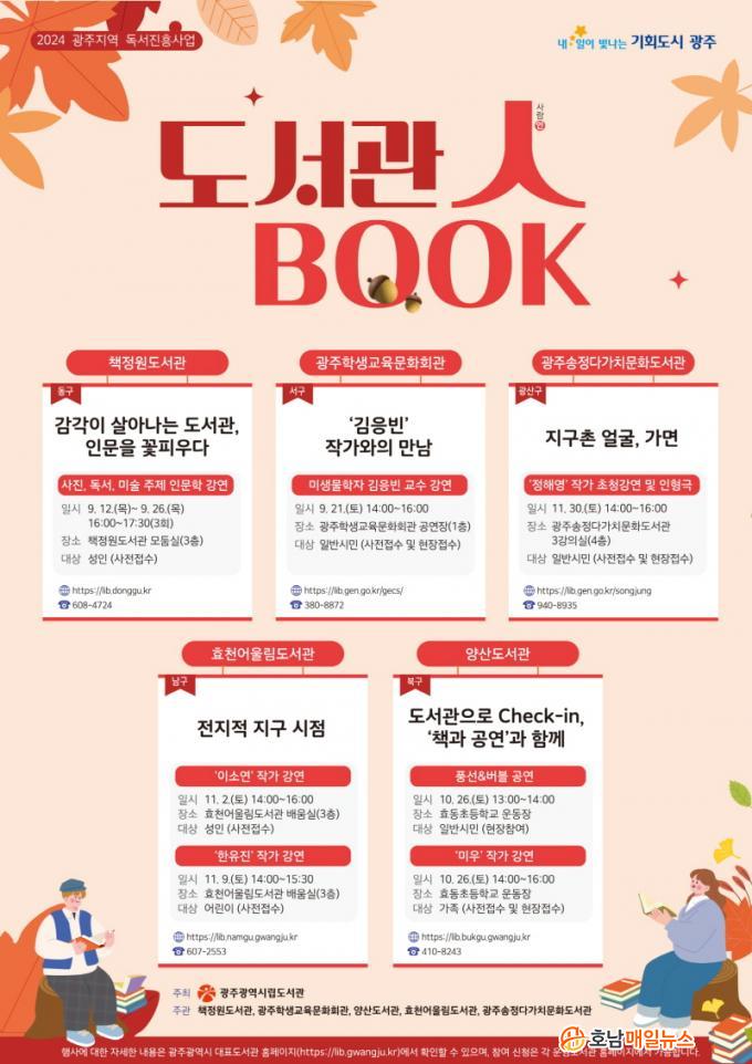 ±¤ÁÖ±¤¿ª½Ã¸³µµ¼°üÀº ¿ÃÇØ ÇϹݱ⠽ùΠµ¶¼ÁøÈï»ç¾÷À¸·Î ¿À´Â 12ÀϺÎÅÍ 11¿ù30ÀϱîÁö Ã¥Á¤¿øµµ¼°ü, ±¤ÁÖÇлý±³À°¹®Èȸ°ü, ¾ç»êµµ¼°ü, ȿõ¾î¿ï¸²µµ¼°ü, ±¤ÁÖ¼ÛÁ¤´Ù°¡Ä¡¹®Èµµ¼°ü¿¡¼ ¡®µµ¼°ü‧ìÑ‧book¡¯ Çà»ç¸¦ ¿¬´Ù.