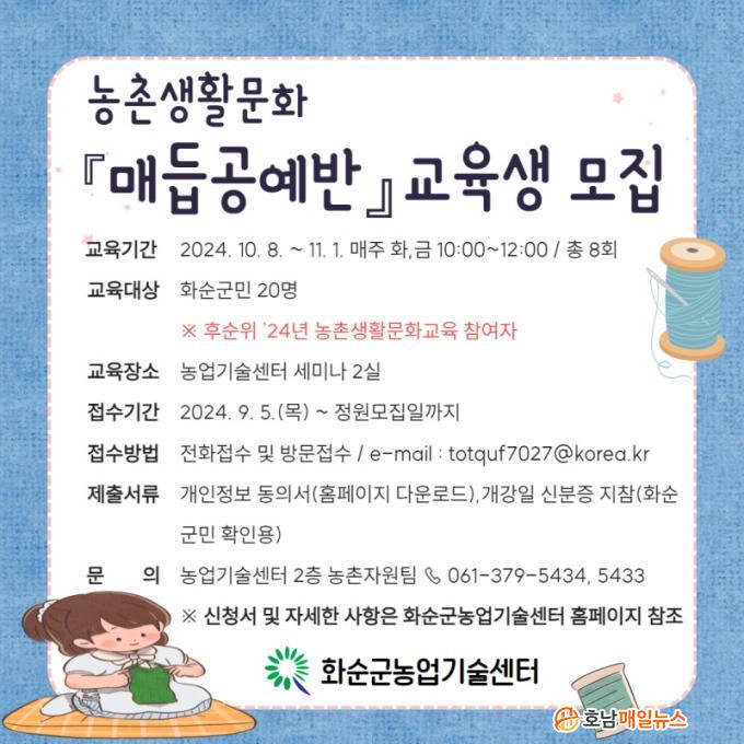 À̹ø ±³À°Àº 2024. 10. 8ÀÏ ~ 11. 1ÀϱîÁö ³ó¾÷±â¼ú¼¾ÅÍ¿¡¼ ¸ÅÁÖ È¿äÀϰú ±Ý¿äÀÏ¿¡ ÃÑ 8ȸ·Î ÃßÁøµÇ¸ç, ±³À°»ýÀº 20¸íÀ» ¼±¹ßÇÑ´Ù.