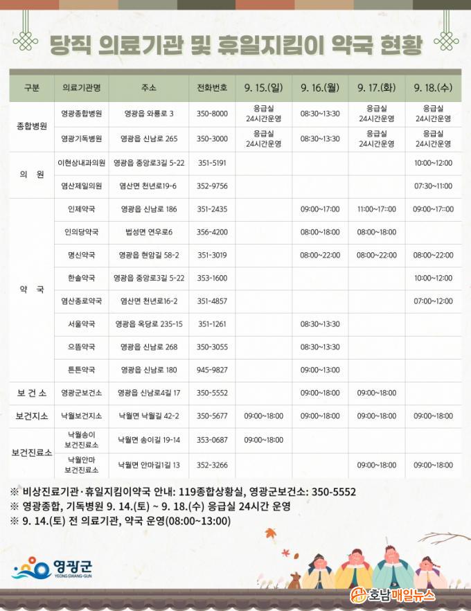 ¿¬ÈޱⰣ µ¿¾È °©ÀÛ½º·¯¿î °Ç°ÀÌ»óÀ̳ª ÀÀ±Þ »óȲÀ¸·Î ÀÎÇØ ÀÇ·á±â°üÀ» ¹æ¹®ÇØ¾ß ÇÏ´Â ±º¹ÎµéÀÌ ¾ÈÀüÇÏ°í ½Å¼ÓÇÑ Áø·á¸¦ ¹ÞÀ» ¼ö ÀÖµµ·Ï ÀÀ±ÞÀÇ·á±â°ü 2°³¼Ò¿¡¼ 9. 16(¿ù), 08:30 ~ 13:30 ¿ÀÀü Á¤»óÁø·á¸¦ ½Ç½ÃÇÑ´Ù°í ¹àÇû´Ù.