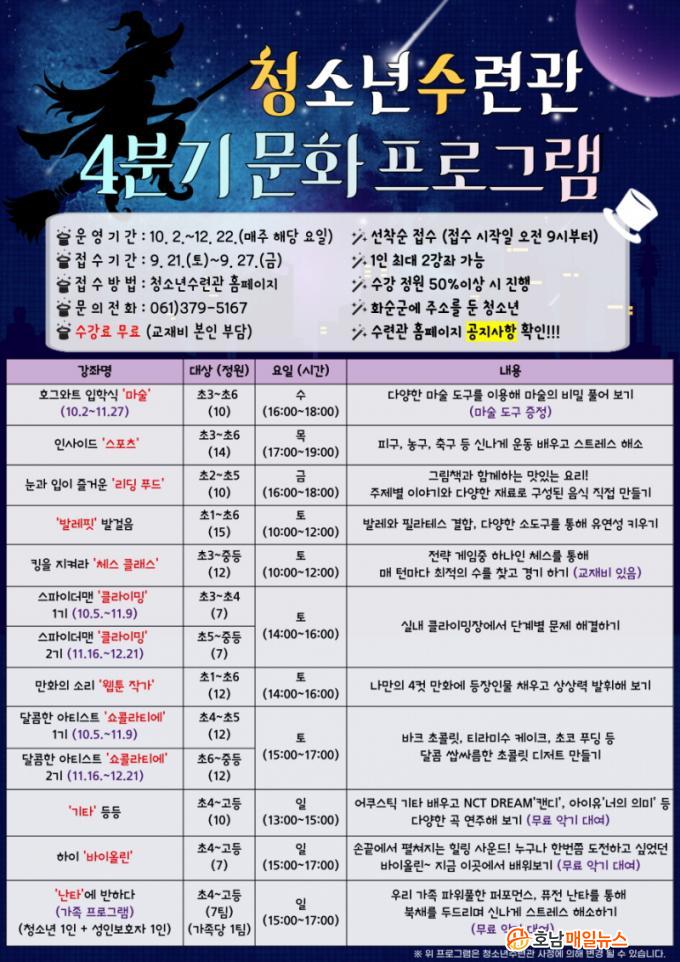 û¼Ò³â ´ë»óÀ¸·Î´Â ¡ãÈ£±×¿ÍÆ® ÀÔÇÐ½Ä ¡®¸¶¼ú¡¯ ¡ãÀλçÀÌµå ¡®½ºÆ÷Ã÷¡¯ ¡ã´«°ú ÀÔÀÌ Áñ°Å¿î ¡®¸®µùǪµå¡¯ ¡ã¡®¹ß·¹ÇÍ¡¯ ¹ß°ÉÀ½ ¡ãÅ·À» ÁöÄÑ¶ó ¡®Ã¼½º Ŭ·¡½º¡¯ ¡ã½ºÆÄÀÌ´õ¸Ç ¡®Å¬¶óÀ̹֡¯ ¡ã¸¸ÈÀÇ ¼Ò¸® ¡®À¥Å÷ ÀÛ°¡¡¯ ¡ã´ÞÄÞÇÑ ¾ÆÆ¼½ºÆ® ¡®¼îÄÝ¶óÆ¼¿¡¡¯ ¡ã¡®±âŸ¡¯ µîµî ¡ãÇÏÀÌ ¡®¹ÙÀ̿ø°¡¯ 10°³ °Á°¡ °³¼³µÇ¾úÀ¸¸ç, °¡Á· ÇÁ·Î±×·¥À¸·Î´Â ¡ã¡®³Å¸¡¯¿¡ ¹ÝÇÏ´Ù °Á 1°³°¡ ¿î¿µµÈ´Ù.