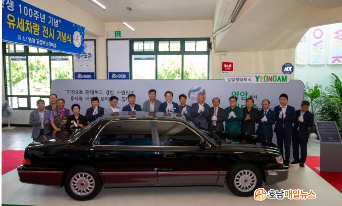 ¾ÕÀ¸·Î ¿µ¾Ï°ø¿µ¹ö½ºÅ͹̳ο¡ ¹æ¹®Çϸé, ±è Àü ´ëÅë·ÉÀÇ ¾ó±¼°ú ¡®¿µ¾Ï¿¡¼ ±è´ëÁß ´ëÅë·ÉÀ» ±â¾ïÇÏ´Ù¡¯´Â ¹®±¸°¡ ´ã±ä °¡·Îº® ¾Õ¿¡ Àü½ÃµÈ Àü½Ã À¯¼¼Â÷·®À» º¼ ¼ö ÀÖ´Ù.