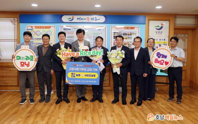Áö³ 9¿ù 9ÀÏ ÀåÈﱺ ¿ë»ê³óÇù(Á¶ÇÕÀå ¹Úöȯ), ¾È¾ç³óÇù(Á¶ÇÕÀå ±è¿µÁß)°ú Áøµµ±º ¼Áøµµ³óÇù(Á¶ÇÕÀå °¼º¹Î) ÀÓÁ÷¿øµéÀÌ ÀåÈﱺûÀ» ¹æ¹®ÇØ °íÇâ»ç¶û±âºÎ±Ý ±³Â÷ ±âºÎ½ÄÀ» °¡Á³´Ù.