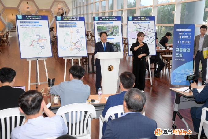 ±¤ÁÖ±¤¿ª½Ã(½ÃÀå °±âÁ¤)´Â 11ÀÏ ½Ãû 1Ãþ ½Ã¹ÎȦ¿¡¼ ¹ö½ºÁ¾ÇÕÅ͹̳Î, ±¤ÃµÀç°³¹ß, ½Å¼¼°è¹éÈÁ¡ È®Àå, ´õÇö´ë±¤ÁÖ °³Á¡ µî ´ë±Ô¸ð °³¹ß»ç¾÷À¸·Î ±³Åë³ÀÌ ¿ì·ÁµÇ´Â ±¤Ãµ±Ç¿ªÀÇ ±³Åë¹®Á¦¸¦ ÇØ¼ÒÇÏ°í ½Ã¹Î ºÒÆíÀ» ÃÖ¼ÒÈÇϱâ À§ÇÑ ¡®±¤Ãµ±Ç¿ª ´ë¡¤ÀÚ¡¤º¸ Ưº°±³Åë´ëÃ¥¡¯À» ¸¶·Ã, ¹ßÇ¥Çß´Ù.