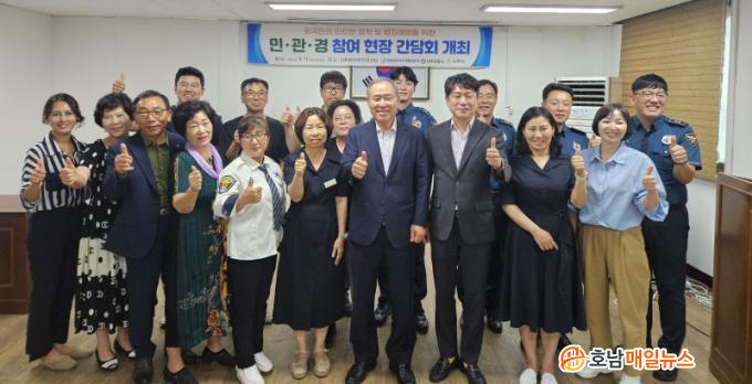 Áö¿ªÁÖ¹Î, ½Ã±º, °æÂû¼ µîÀÌ Âü¼®ÇÑ °¡¿îµ¥ ÁøÇàµÈ °£´ãȸ´Â ¿Ü±¹ÀÎ Ä¡¾ÈȰµ¿ À¯°øÀÚ Æ÷»ó, ±â°üº° ¿Ü±¹ÀÎ ¹üÁË¿¹¹æ Ȱµ¿ ¿ì¼ö»ç·Ê °øÀ¯, ¹üÁË¿¹¹æ ȯ°æ°³¼± »ç¾÷ ÃßÁø°æ°ú ¹ßÇ¥ ¹× Âü¼®ÀÚ Åä·Ð ¼ø¼·Î ÁøÇàµÆ´Ù.