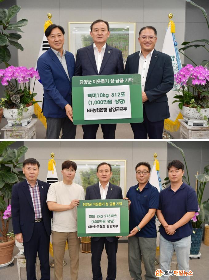 ´ã¾ç±º¿¡ Àü´ÞµÈ ÁÖ¿ä ÈÄ¿ø ¼ºÇ°Àº ¡ã¢ßÆÄ¹ÖÇϿ콺(´ëÇ¥ °Áر¸) ·ÑÄÉÀÌÅ© 100»óÀÚ(200¸¸ ¿ø »ó´ç) ¡ã´ëÇÑÇѵ·Çùȸ ´ã¾ç±ºÁöºÎ(ÁöºÎÀå °º´±¸) Çѵ· 2kg 273»óÀÚ(600¸¸ ¿ø »ó´ç) ¡ã NH³óÇù ´ã¾ç±ºÁöºÎ(ÁöºÎÀå À̱⺹) ¹é¹Ì 10kg 312Æ÷(1,000¸¸ ¿ø »ó´ç) µîÀ¸·Î ¸¹Àº ºÐµéÀÌ µû¶æÇÑ ¸¶À½À» ÀüÇß´Ù.