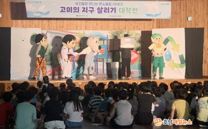 °ø¿¬Àº Áö±¸¿Â³È·Î ÁýÀ» ÀÒ°í ±¾ÁÖ¸²¿¡ óÇÑ ºÏ±Ø°õ ¡®°í¹Ì¡¯°¡ ´Ù½Ã ºÏ±ØÀ¸·Î µ¹¾Æ°¡ ÇູÇÏ°Ô »ì ¼ö ÀÖµµ·Ï Áö±¸ »ì¸®±â ´ëÀÛÀüÀ» ÆîÄ¡´Â ³»¿ëÀ¸·Î ±âÈÄÀ§±â¶ó´Â »çȸ¹®Á¦¸¦ ÃʵîÇлýµéÀÇ ´«³ôÀÌ¿¡ ¸ÂÃç ÀÎÇü±Ø ¹ÂÁöÄà ÇüÅ·ΠÀü´ÞÇß´Ù. ƯÈ÷ Áö±¸¿Âµµ »ó½Â ¿äÀÎÀ» ÇÔ²² ã¾Æº¸´Â Âü¿©Çü °ø¿¬À¸·Î ¸ôÀÔµµ¸¦ ³ô¿© ÇлýµéÀÇ È£ÀÀÀ» À̲ø¾ú´Ù.