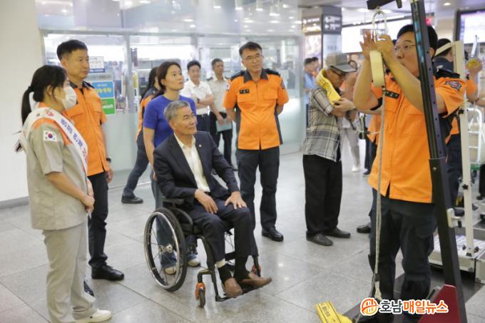 ƯÈ÷ ±¤ÁÖ¼Ò¹æ¾ÈÀüº»ºÎ´Â 13ÀÏÀ» ¡®½ÉÆó¼Ò»ý¼úÀÇ ³¯¡¯·Î ÁöÁ¤ÇØ ±¤ÁÖÁ¾ÇÕ¹ö½ºÅ͹̳Î, ±¤ÁÖ¼ÛÁ¤¿ª, ±¤ÁÖ¿ª µî¿¡¼ ±Í¼º°´À» ´ë»óÀ¸·Î ¼Ò¹æ¾ÈÀü±³À° ºÎ½º¸¦ ¿î¿µÇß´Ù. ºÎ½º¿¡¼´Â ¡ã¿Ï°±â ÀÌ·Ð ¡ã¿Ï°±â Àåºñ Âø¿ë ¹× »ç¿ë¹ý ¡ã½ÉÆó¼Ò»ý¼ú À̷С¤½Ç½À ¡ãÇÏÀÓ¸®È÷(±âµµ¿¡ À̹°ÁúÀÌ µé¾î°¡ ¼ûÀ» ½¯ ¼ö ¾øÀ» ¶§ »ç¿ëÇÏ´Â ±¸±Þ ¿ä¹ý) µî üÇèȰµ¿À» ÁøÇàÇß´Ù.