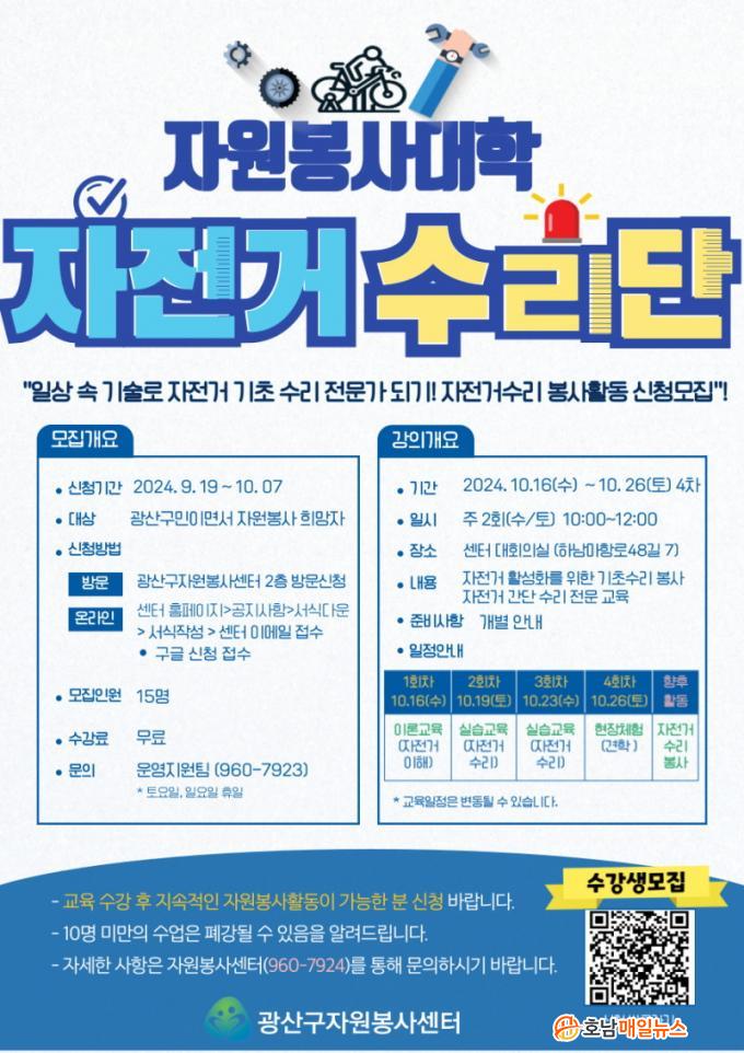 ÀÌ °úÁ¤À» À̼öÇÑ Âü¿©ÀÚµéÀº ÀÚÀü°Å ¼ö¸® ÀÚ¿øºÀ»ç Ȱµ¿¿¡ Âü¿©ÇÏ°Ô µÇ¸ç, ±¤»ê±¸ ³» ÁöÁ¤µÈ Àå¼Ò¿¡¼ ÀÚÀü°Å Á¡°Ë ¹× °£´ÜÇÑ ¼ö¸® ¼ºñ½º¸¦ Á¦°øÇÒ ¿¹Á¤ÀÌ´Ù. À̸¦ ÅëÇØ ÀÚÀü°Å °íÀåÀ¸·Î ºÒÆíÀ» °Þ´Â ½Ã¹Îµé¿¡°Ô µµ¿òÀ» ÁÙ ¼ö ÀÖÀ¸¸ç, ÀÚÀü°Å ÀÌ¿ë ÃËÁø°ú ȯ°æ º¸È£¿¡µµ ±â¿©ÇÒ °ÍÀÌ´Ù.