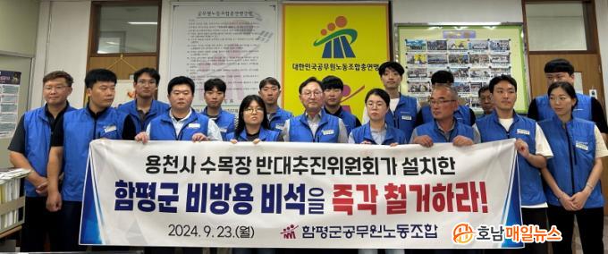 650¿© ÇÔÆò±º°ø¹«¿ø³ëÁ¶ Á¶ÇÕ¿øµéÀº ¼º¸í¼¸¦ ÅëÇØ ¡°¿ëõ»ç¼ö¸ñÀå¹Ý´ëÀ§¿øÈ¸´Â ¿ëõ»çÀÇ ¼ö¸ñÀå Á¶¼º ÃßÁøÀ¸·Î ÀÎÇØ ¸¶À» ¹ßÀüÀÌ ÀúÇØµÈ´Ù´Â ÀÌÀ¯·Î °¢Á¾ Áýȸ ¹× ¼Ò¼ÛÀ» ÅëÇØ ÇÔÆò±º ÇàÁ¤À» ¹æÇØÇϰí ÀÖ´Ù¡±°í ºñÆÇÇß´Ù.