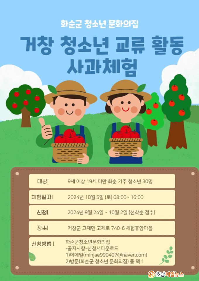 üÇèÀº 9¿ù 24ÀϺÎÅÍ 10¿ù 2ÀϱîÁö ½Åû¡¤Á¢¼öÇϸç, ȼø±º¿¡ ÁÖ¼Ò¸¦ µÐ 9¼¼~18¼¼±îÁö û¼Ò³âÀ¸·Î ȼø±ºÃ»¼Ò³â¹®ÈÀÇÁý ´©¸®Áý(http://hwasunyouth.or.kr/) °øÁö »çÇ׿¡ °ÔÀçµÈ ¾ç½ÄÀ» ³»·Á¹Þ¾Æ ÀÛ¼º ÈÄ, ¹æ¹® ½Åû ¶Ç´Â À̸ÞÀÏ(minjae990407@naver.com)·Î ½ÅûÇÏ¸é µÈ´Ù. ±âŸ »çÇ×Àº ȼø±ºÃ»¼Ò³â¹®ÈÀÇÁý (379-5176)¿¡ ¹®ÀÇÇÏ¸é µÈ´Ù.