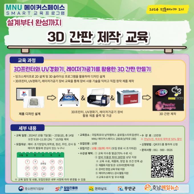 ÇöÀç, ¡®Àü¹®¸ÞÀÌÄ¿ â¾÷±³À° °úÁ¤ 2±â¡¯ ÇÁ·Î±×·¥Àº 10¿ù 1ÀϱîÁö ¼±Âø¼øÀ¸·Î ½ÅûÀÚ¸¦ ¸ðÁý ÁßÀ̸ç, Àü³²µµ¹Î ¶Ç´Â ¸ñÆ÷´ëÇб³ ÀçÇлýÀº ±³À°ºñÀÇ 50% ÇÒÀÎÀ» ¹ÞÀ» ¼ö ÀÖ´Ù.