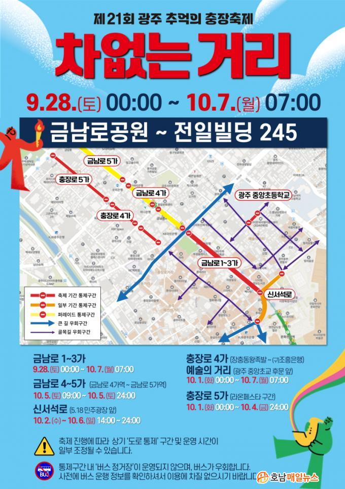 ¿¹¼úÀÇ °Å¸®¿Í ±Ý³²·Î 4°¡ Áê¾ó¸® °Å¸®´Â 10¿ù1ÀÏ ÀÚÁ¤ºÎÅÍ 10¿ù7ÀÏ ¿ÀÀü 7½Ã±îÁö Â÷·®ÀÌ ÅëÁ¦µÇ¸ç À̹ۿ¡ dz³²¿Á~ÃæÀå·Î 1°¡ ÀÔ±¸´Â 2ÀϺÎÅÍ 6ÀϱîÁö ¸ÅÀÏ ¿ÀÈÄ 2½ÃºÎÅÍ ÀÚÁ¤±îÁö Â÷·® ¿îÇàÀ» ¸·´Â´Ù.