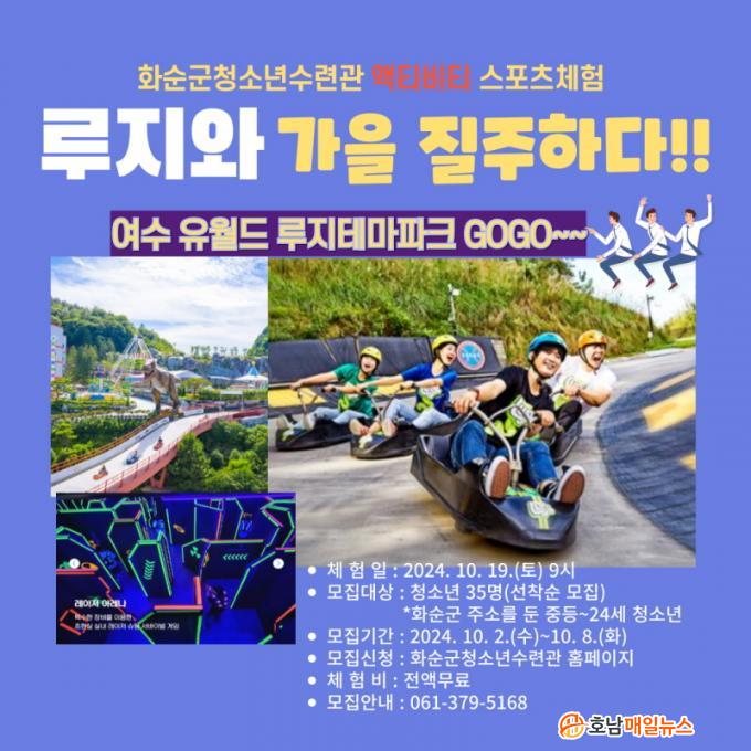 ¸ðÁý´ë»óÀº ȼø±º¿¡ ÁÖ¼Ò¸¦ µÐ ÁßÇлý ~ 24¼¼ û¼Ò³â 35¸íÀ¸·Î ¾ÈÀüÇÑ Ã¼ÇèÀ» À§ÇØ ÀÚÀ¯·Î¿î Ȱµ¿ÀÌ °¡´ÉÇÑ ÁßÇлýºÎÅÍ ¸ðÁýÇϸç, 10¿ù 2ÀÏ(¼ö) ~ 8ÀÏ(È)±îÁö û¼Ò³â¼ö·Ã°ü ȨÆäÀÌÁö(https://hwasunyouth.kr) ¡®ÇÁ·Î±×·¥ ½Åû¡¯ °Ô½ÃÆÇÀ» ÅëÇØ Á¢¼öÇÏ¿© üÇè ´ë»óÀÚ·Î È®Á¤½Ã ¹®ÀÚ·Î ¾È³»µÉ ¿¹Á¤ÀÌ´Ù.