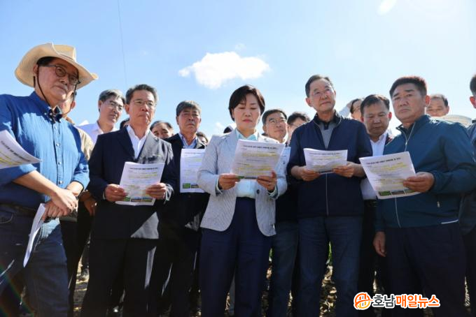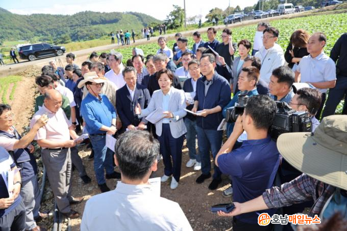 À̳¯ ÇöÀåÁ¡°Ë¿¡´Â ¸íÇö°ü ÇØ³²±º¼ö¿Í ¹ÚÁö¿ø ±¹È¸ÀÇ¿ø, À̼º¿Á ÇØ³²±ºÀÇȸ ÀÇÀå, Àü¶ó³²µµ Á¤±¤Çö ³óÃà»ê½Äǰ±¹Àå°ú ¹Ú¼È« ³óÇù°æÁ¦ÁöÁÖ ´ëÇ¥ÀÌ»ç, Áö¿ª ³óÇù °ü°èÀÚµéÀÌ ÇÔ²²ÇØ ÇØ³²±º È¿ø¸é ¹èÃß Æ÷ÀüÀ» µÑ·¯º¸°í, ÇâÈÄ ¼ö±Þ Áö¿ø¹æ¾È¿¡ ´ëÇØ ³íÀÇÇß´Ù.