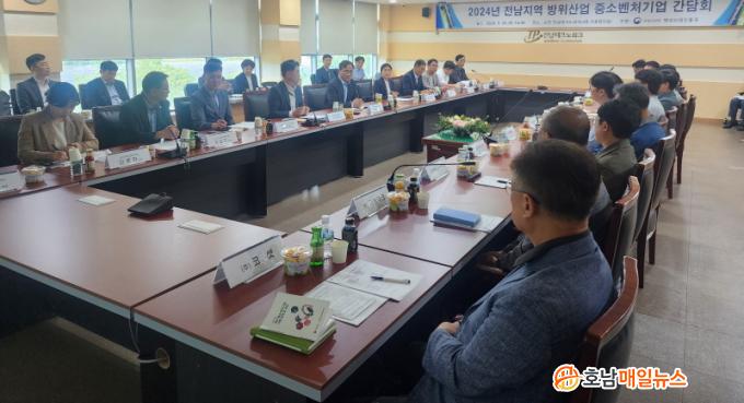 °£´ãȸ´Â Áö³ 26ÀÏ ¹æÀ§»ç¾÷û ÁÖ°üÀ¸·Î ¸¶·ÃµÆÀ¸¸ç, ±èÀϵ¿ ¹æÀ§»ç¾÷û ¹æÀ§»ê¾÷ÁøÈï±¹Àå, ¼Ò¿µÈ£ Àü³²µµ Àü·«»ê¾÷±¹Àå, Àü³²Áö¿ª ¹æ»ê±â¾÷ ´ëÇ¥ ¹× À¯°ü±â°ü °ü°èÀÚ µî 40¿© ¸íÀÌ Âü¼®ÇØ ¹æ»ê±â¾÷ Áö¿ø ¹æ¾È µî¿¡ ´ëÇØ ³íÀÇÇß´Ù.
